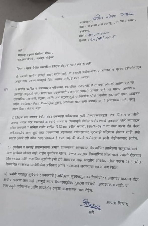 ग्रामपंचायत नांदगाव व नांदबादेवी युवा ग्रामोत्सव मंडळ, नांदगाव यांनी प्रस्तावित जिंदाल बंदर प्रकल्पाला विरोध नोंदवण्यासाठी आणि येत्या ६ ऑक्टोबर २०२५ रोजी होणाऱ्या पर्यावरणविषयक जनसुनावणीसाठी हरकती सादर करण्याच्या उद्देशाने एक अनोखा उपक्रम हाती घेतला आहे.