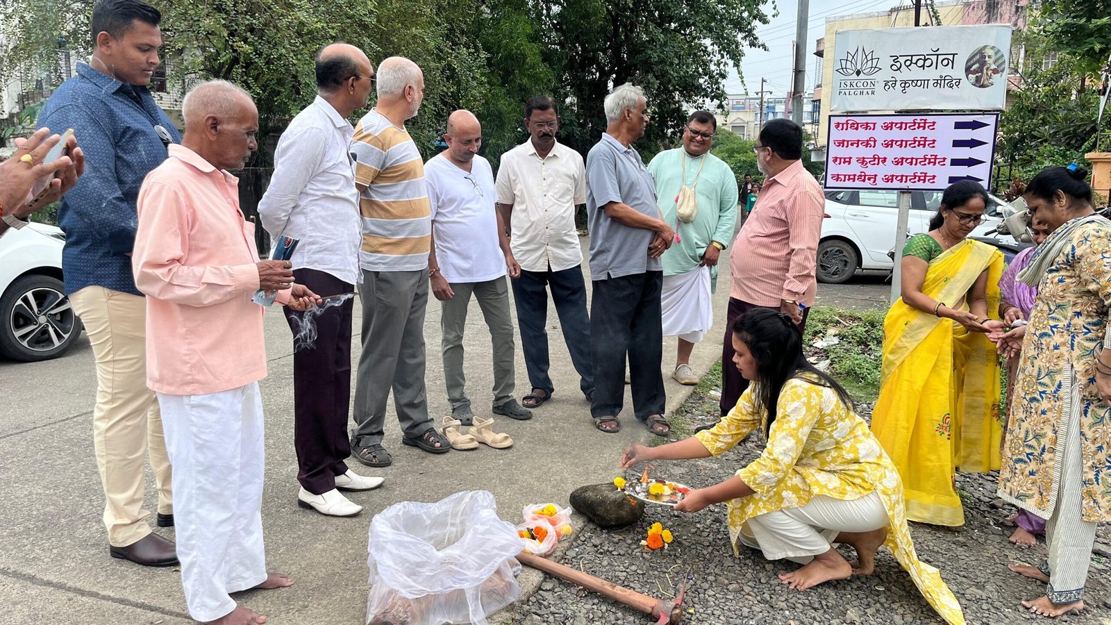 पालघर, दि. ३० ऑक्टोबर २०२५ : पालघर पूर्वेतील नवली येथील इस्कॉन मंदिर ते राधिका अपार्टमेंट दरम्यानचा रस्ता व गटार कॉंक्रिटीकरणाच्या कामाचा शुभारंभ आज नागरिकांच्या उपस्थितीत भूमिपूजनाने करण्यात आला. या महत्त्वाच्या विकासकामासाठी महाराष्ट्र राज्याचे वनमंत्री तथा पालघर जिल्ह्याचे पालकमंत्री मा. श्री. गणेशजी नाईक यांनी तब्बल एक कोटी रुपयांचा निधी मंजूर करून दिला आहे.